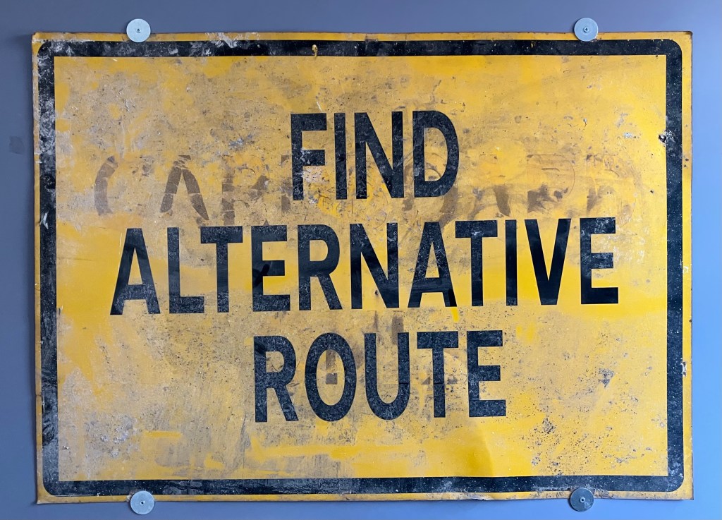 I was struck by this sign blowing down a Sheffield city centre street one very stormy night a decade ago. Struck both literally, it flew at me like a wild animal luckily leaving just bruising, and as a seemingly unhelpful message. There was no sign of traffic diversion or road works and it was dangerous so I took it away.